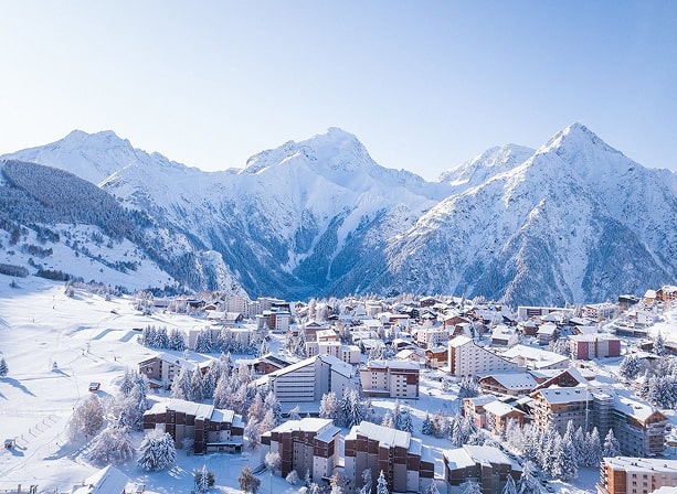 Les Deux Alpes is one of the Alps’ most thrilling and snow-reliable ski resorts. Located at 1650 m, with lifts climbing up to 3600 m, Les Deux Alpes is home to Europe’s largest skiable glacier, the resort guarantees snow year-round and offers over 200 km of pistes for all levels, from gentle beginner runs to challenging off-piste terrain.